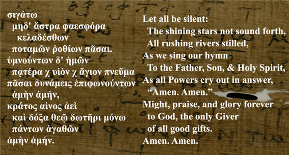 이 찬송가는 서기 첫 4세기에서 유일하게 살아남은 그리스 기독교 찬송가이다.