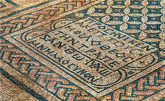 .AD 230년 이스라엘 크파르 오트나이(Kfar Otnai)에 있는 한 기독교인의 집에 있던 모자이크(Mosaic) : "하나님을 사랑하는 아케프토스(Akeptous)가 기념으로 식탁을 하나님이신 예수 그리스도께 봉헌했다.“ <CC BY-SA 4.0 | © Vesafis Tzferris (cojs.org) | commons.wikimedia.orgMosaic>