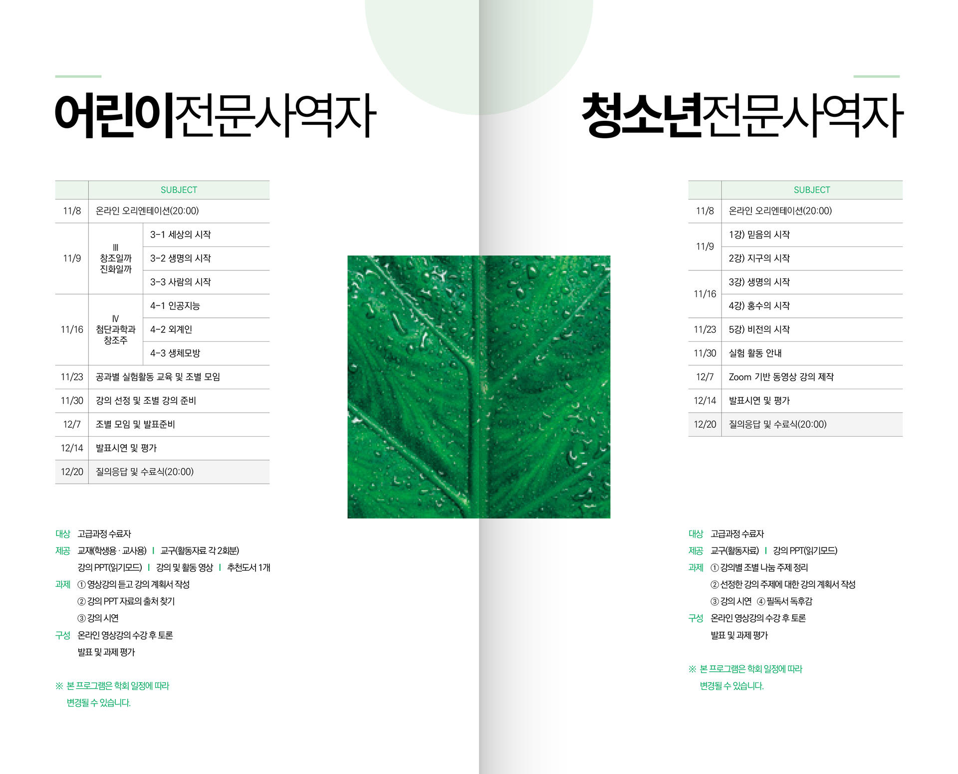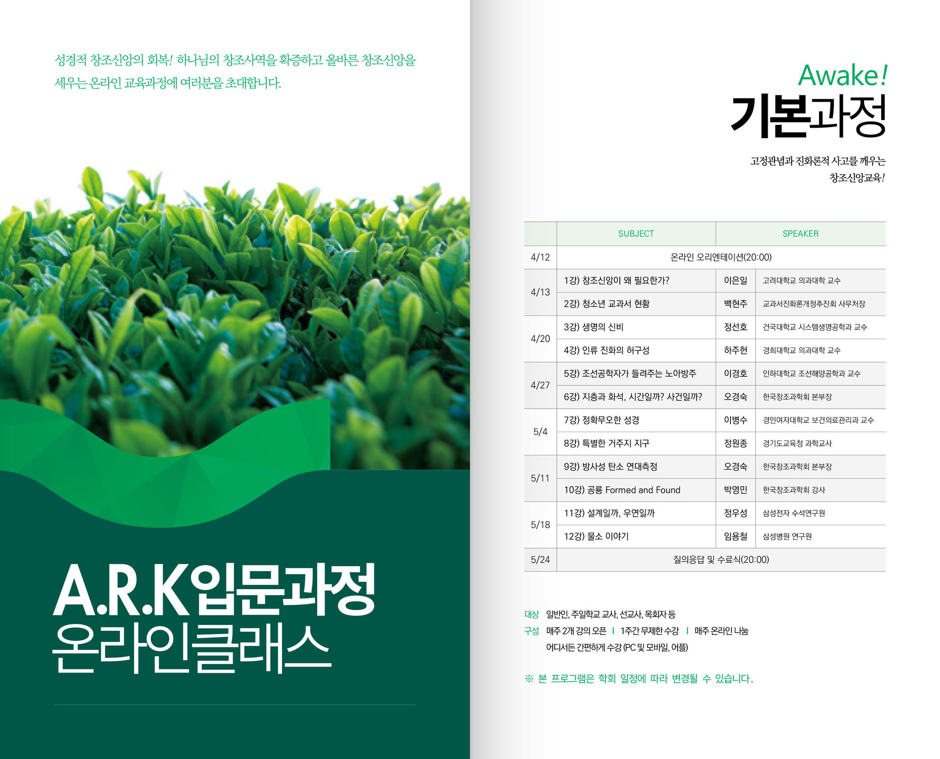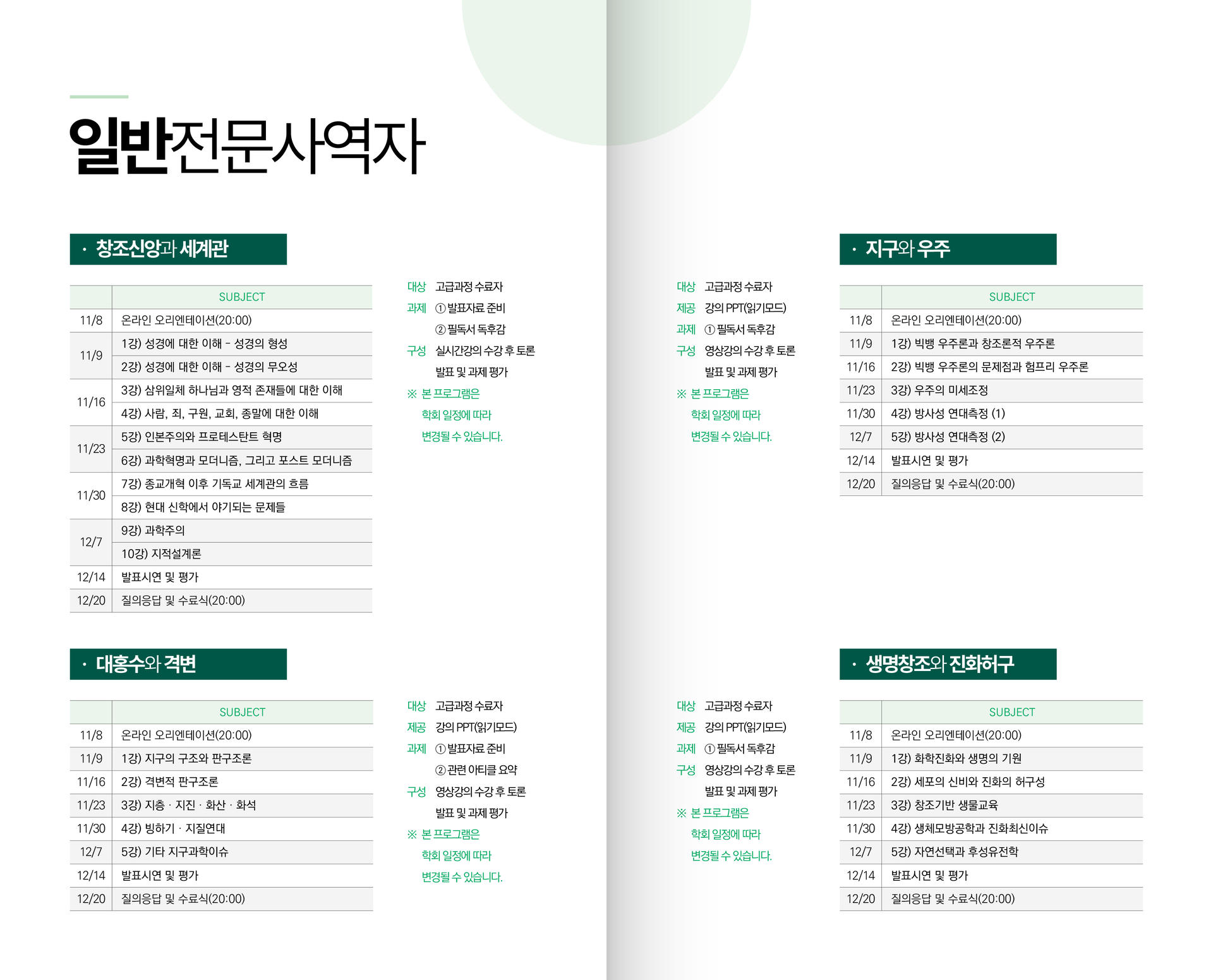 창조과학스쿨 교육과정 안내